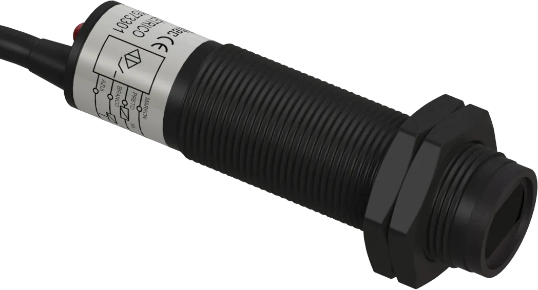 1573301 C2S-901573301 Sensor Fotoelétrico Difuso PNP Ø 18mm 4 Fios D.S 11cm 6 a 32Vcc Cabo 2 Mt