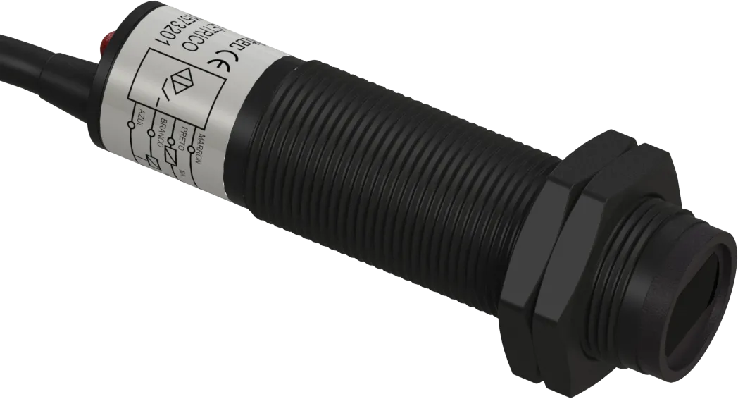 1574201 C2S-901574201 Sensor Fotoelétrico Difuso NPN Ø 18mm 4 Fios D.S 40cm 6 a 32Vcc Cabo 2 Mt