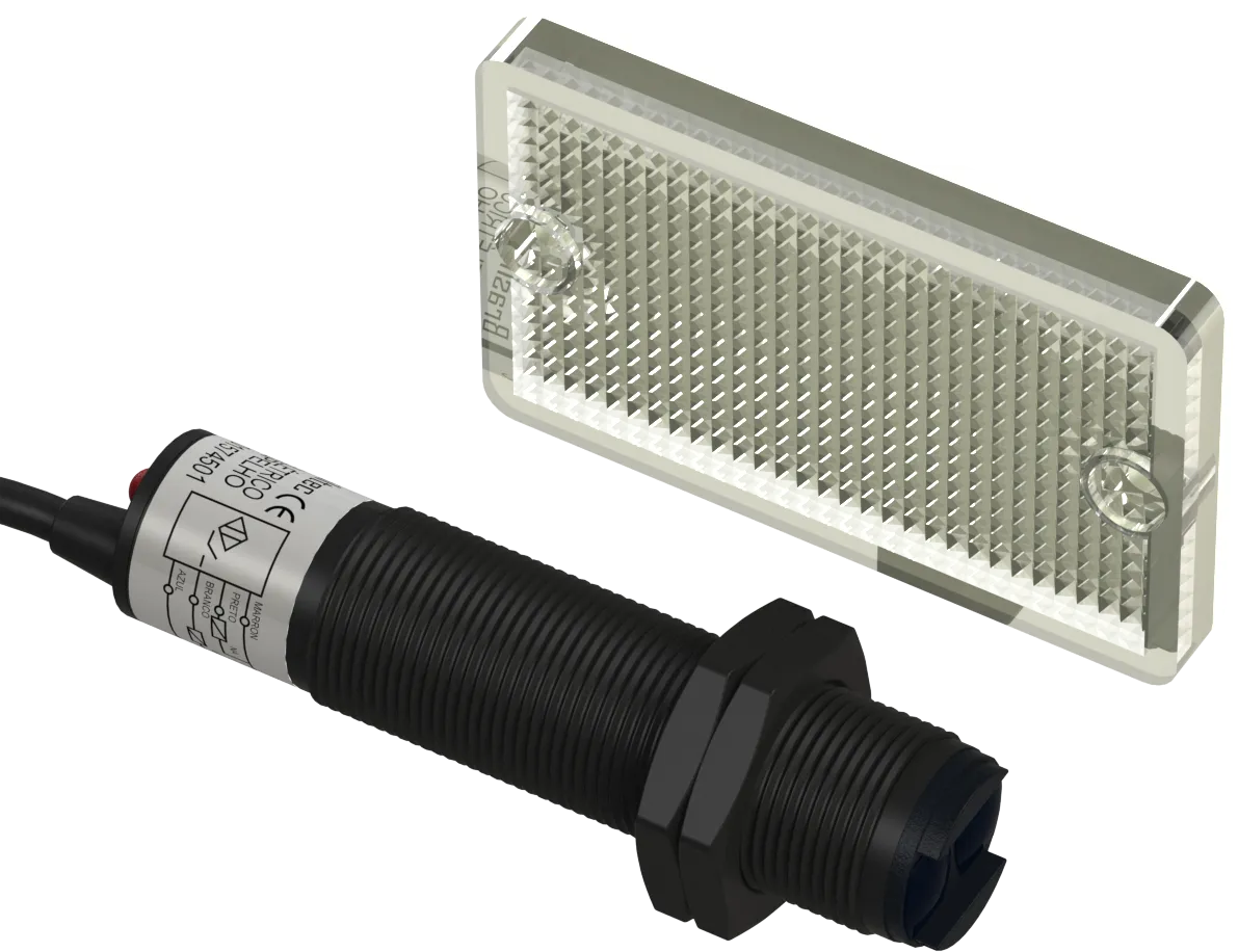 1574501 C2S-901574501 Sensor Fotoelétrico De Espelho NPN Ø 18mm 4 Fios D.S 3mt 6 a 32Vcc Cabo 2 Mt